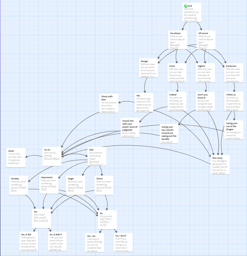 Initially I started off by creating the mental health based part of it first, where it went though asking you how you were feeling and depending on your answer you were given a different answer, though each and every time you were always given a link to the Samaritan in case you needed help.